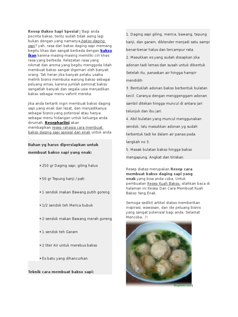 Resep dan cara memasaknya pun. Simpan ke bagian favorit tersimpan di bagian favorit. Kenikmatan yang tersaji dari resep bakso sapi ini sudah menjadi ciri khas dari setiap menu makanan bakso sapi, apalagi bakso ini identik sekali dengan resep indonesia yang biasa diperjualbelikan di mana mana, dan hampir setiap tempat di negri sini sudah tersedia bakso bakso dengan cita rasa. Pas sekali, resep berikut ini bisa menjadi panduan anda untuk mewujudkan keinginan anda tersebut. Sengaja daging kita pilih dengan hara ekonomis untuk mendapatkan harga yang terjangkau.
