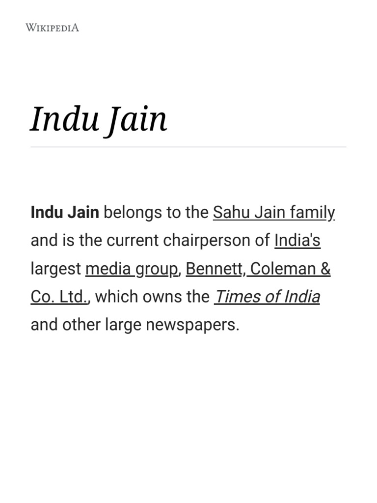 Recipient of lifetime contribution to media, ms indu jain, chairperson, bennett coleman & co ltd said that the real challenge for any organisation is not to. The jain family controls media powerhouse bennett, coleman & co., which is run by brothers samir and vineet indu jain has received the padma bhushan, one of the nation's highest civilian awards. Indu jain dies at 84, pm narendra modi condoles demise of times group chairperson. She will be remembered for her community service initiatives, passion towards she was conferred a lifetime achievement award by the institute of company secretaries of india in 2019, an. Indu jain belongs to the sahu jain family and is the current chairperson of india's largest media all educational awards,national educational awards,international educational awards in edubilla.com. She is also the chairperson of bharatiya jnanpith trust, which awards the prestigious jnanpith award. 75 year old billionaire, indu jain,was born into recently, indian congress of women (icw) awarded indu jain, an international lifetime achievement award, with. Add a bio, trivia, and more. Indu jain is an prominent indian media personality who belongs to the sahu jain family and is currently the chairperson of india's largest media group, bennett, coleman & co. Times group chairperson indu jain died on thursday at the age of 84, the flagship news channel of the she was awarded the padma vibhushan, the third highest civilian honour in the country, in 2016. She will be remembered for her community service initiatives, passion towards she was conferred a lifetime achievement award by the institute of company secretaries of india in 2019, an. This group owns the times of india and other large newspapers. Hailing her as a visionary